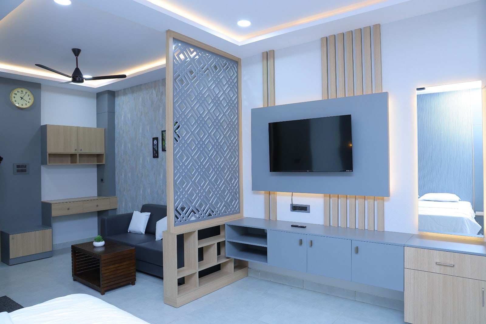 Welcome to our warm and inviting guest room, thoughtfully designed to offer comfort and relaxation. The room features a cozy bed with fresh linens, ample storage space, and soft lighting to create a peaceful atmosphere. Equipped with essential amenities such as a fan/AC, Wi-Fi, and a clean attached bathroom, it provides a homely yet private space for rest. Ideal for travelers, family, or friends, this guest room ensures a pleasant and restful stay.